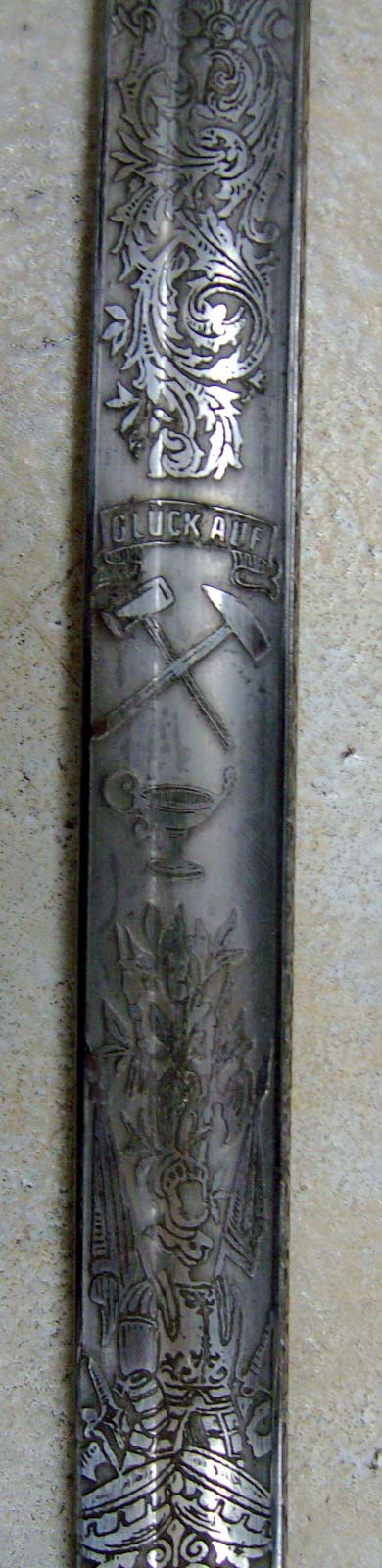 Bei dem Säbel handelt es sich um die neusilbermontierte Waffe eines sächsischen Bergbau-Beamte.