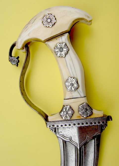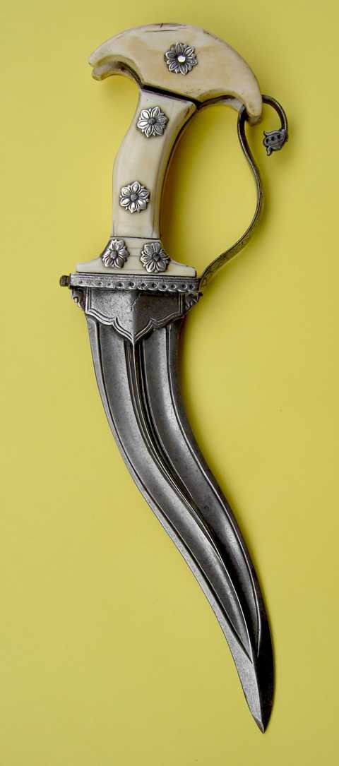 Hier nochmals etwas aus der Abteilung "Nippes", diesmal aus Indien, ein nach meiner Meinung sehr schöner Khanjarli vermutlich aus dem 17. Jahrhundert, Länge 23cm