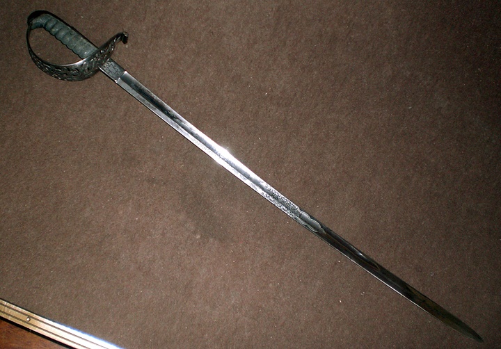 Jetzt, die Fotos meines erwähnten Säbels aus Hannover. Hersteller: " BERNSTORFF & EICHWEDE IN HANNOVER " Eisenhauer. Gesamtl.95.5cm. Klingenl.79.5cm. Klingenbr. 2.7cm. Griffhilze mit Fischhaut, Wicklung fehlt. Gut erhaltene vernickelte Klinge, die Scheide fehlt. Sollte eine entspr. Scheide zum Verkauf stehen, bitte ich um Mitteilung an mich. Danke, Gruß sonjar