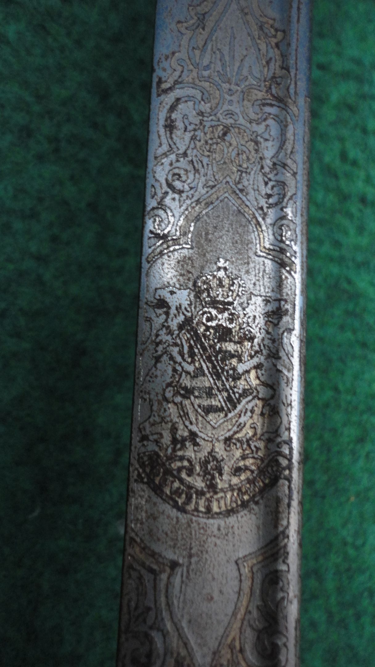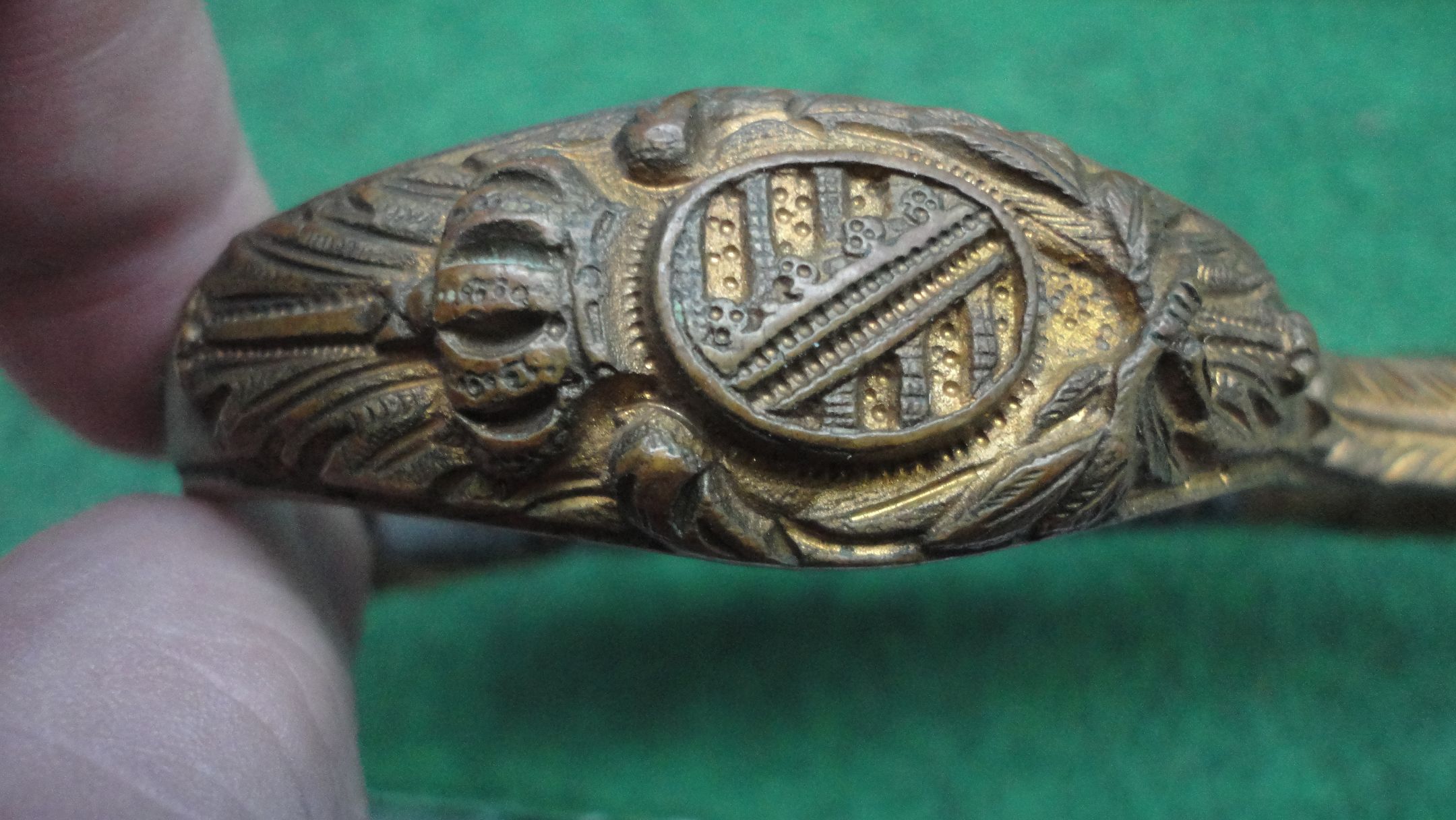 Wenn ich die Details der Bilder richtig erkenne, ist das Wappen auf dem Parierlappen nicht angegossen, sonder anderweitig befestigt - oder ?