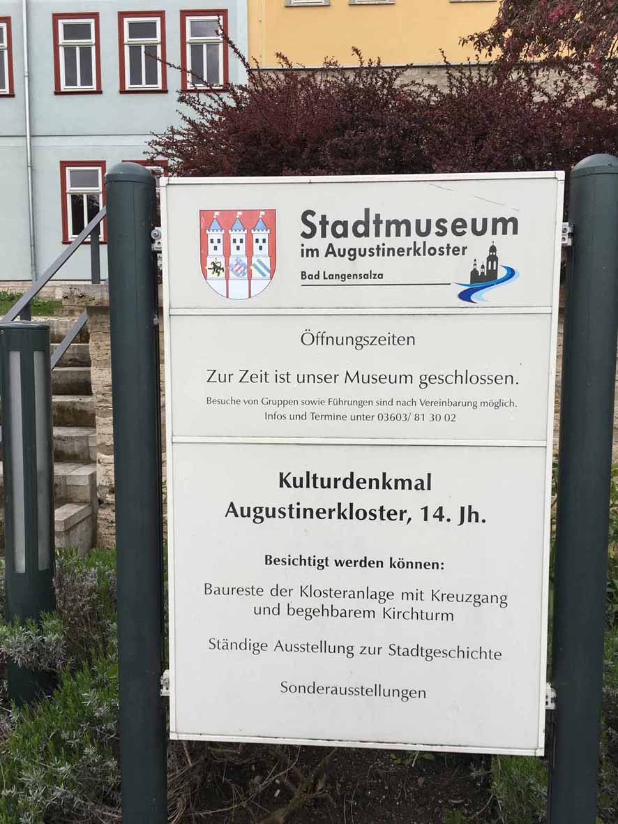 Webseiten ist das Stadtmuseum in Bad Langensalza augenblicklich geschlossen.