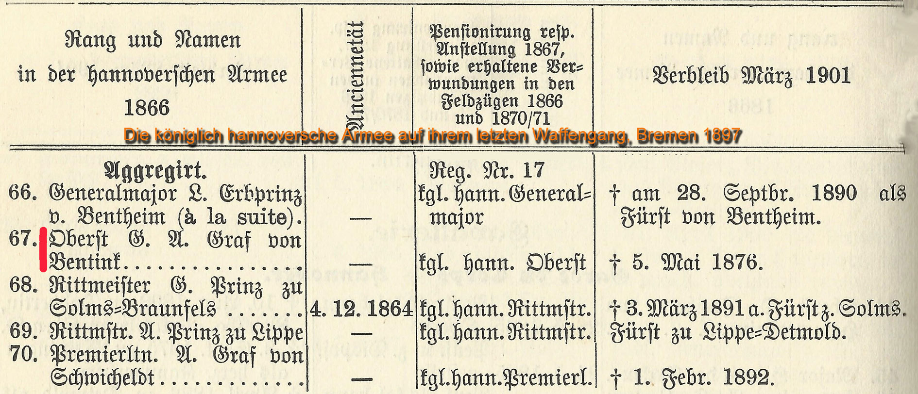 Gustav Adolf von Bentinck (*1809/+1876) als Oberst der hannoverschen G.d.C.