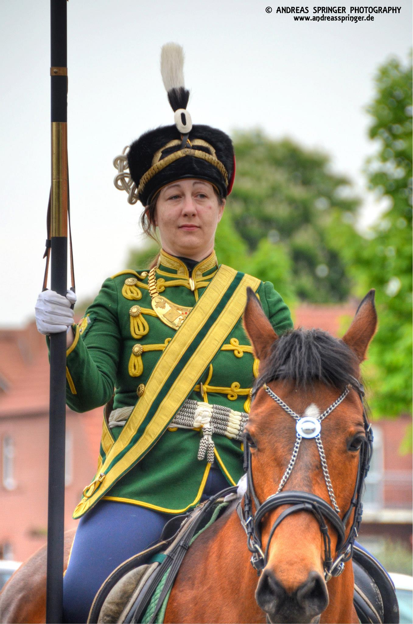 hier der Standartenträger (genauer Standartenträgerin) des Husaren-Regiments Nr.10 in korrekter Uniform