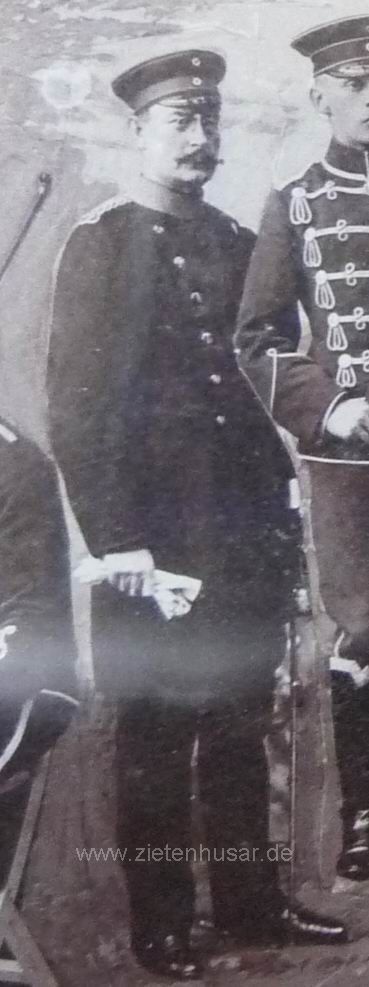 Die Regimentsärzte der Zietenhusaren trugen auf allen mir bekannten Fotos keine Husarenuniform. Den auf dem Foto vermeintlich erkennbaren Ringkragen werde ich mal näher betrachten. Auch hier muss hinzugesagt werden, dass das Foto möglicherweise nach 1919 aufgenommen wurde.