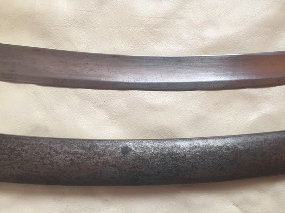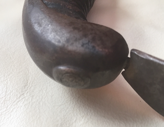 Der Griffbügel ist an der breitesten Stelle ebenfalls 30mm breit. Sehr starke Klingenkrümmung.