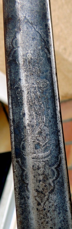 Ich habe bessere Bilder gemacht, der Scheide hat noch seine beiden Ringen , Malerei ist mit Goldflocken vergoldet, die Klinge hat einem L gekrönt auf beiden Seiten .