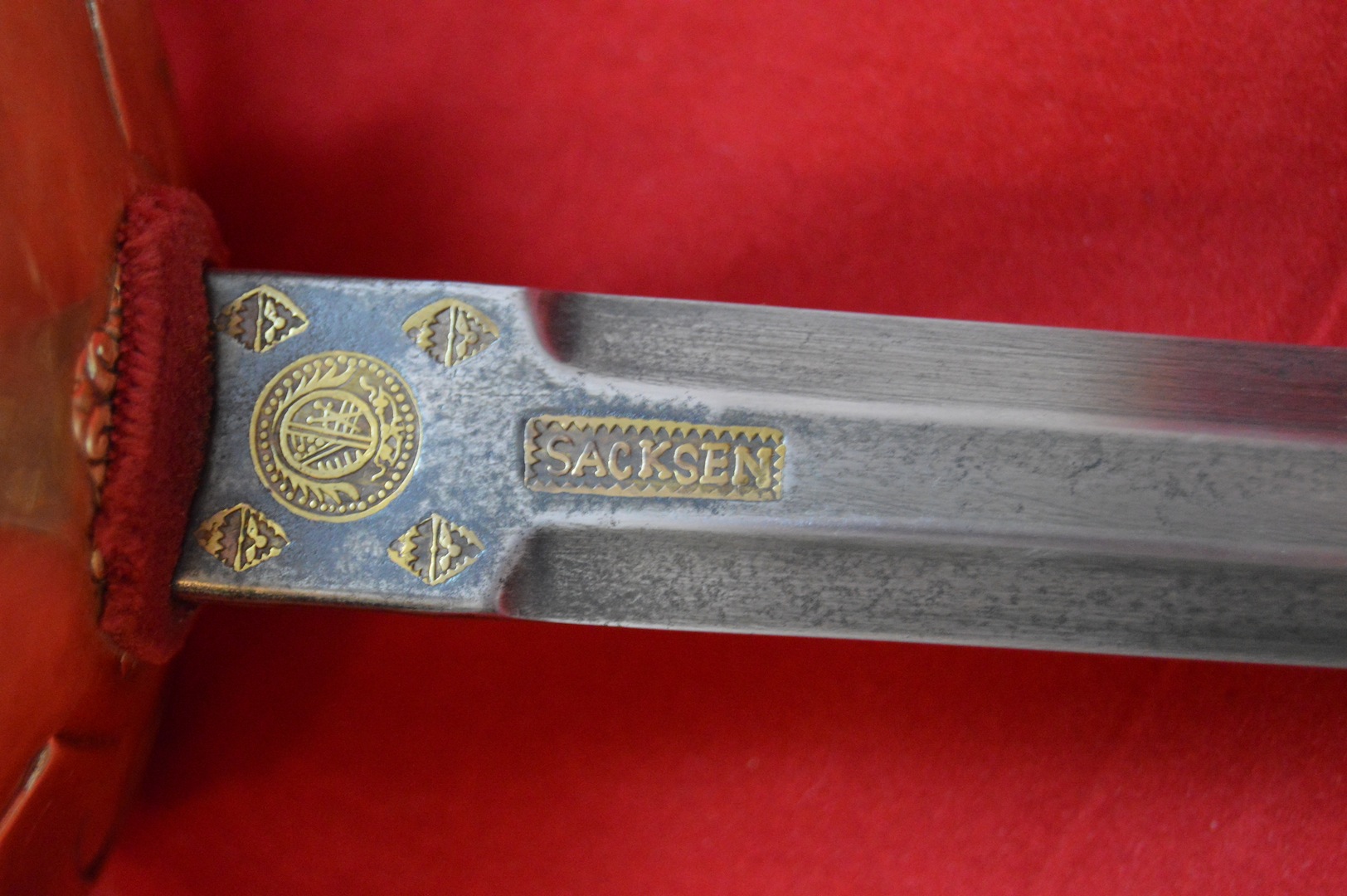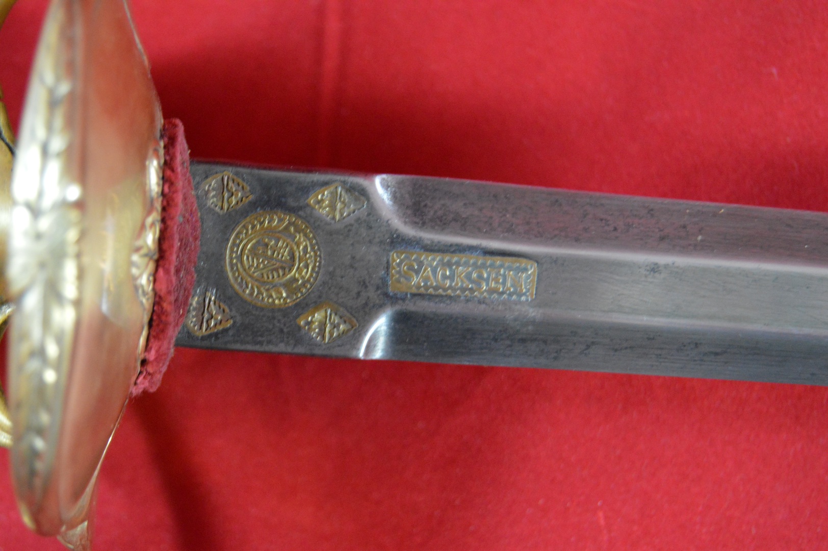 Very nice and distinctive marking to the both sides of the blade. Blade itself is unusually heavy - apparently this is not a court sword.