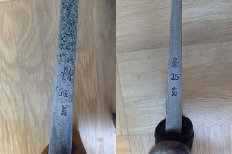 Hier mal zu den im Forum bereits gezeigten Artillerie-Faschinenmessern u/M, die 1915 in Dienst genommene Eisen-Ausführung.