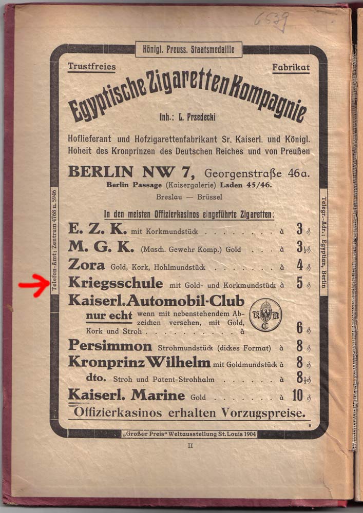 Zigarettenmarke "Kriegsschule" - mit Gold- und Korkmundstück!