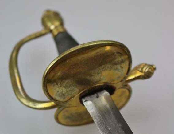 Preußischer Infanterie Offiziersdegen aus der Zeit um 1820 für einen preußischen Militärarzt der so genannten "Pepiniere" (gegründet 1795) , 1818 umbenannt in „Medicinisch Chirurgisches Friedrich Wilhelm Institut", typisches Messinggefäß, – (Quelle?)
