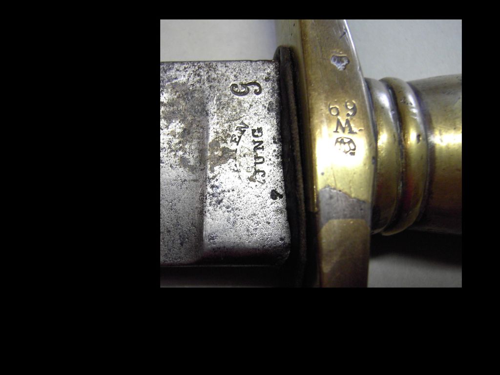 Abnahmestempel auf Parierstange und auf Mund- bzw. Ortblech Scheide,
