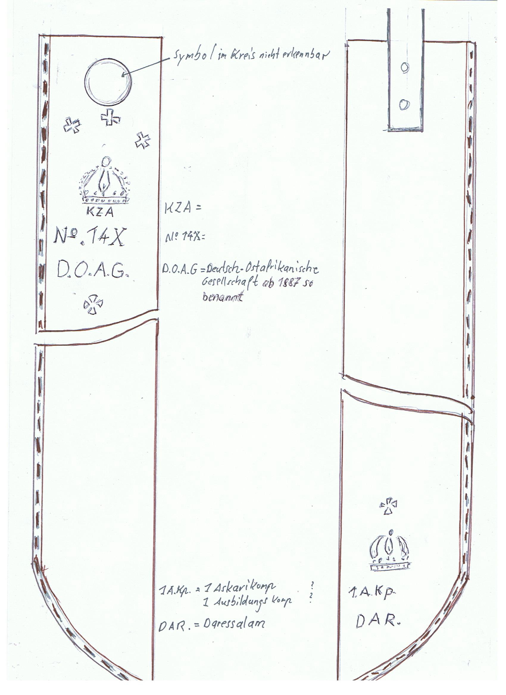 Ich habe alle Daten auf den Skizzen vermerkt. Bei der Scheide dürfte es sich um