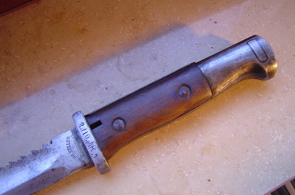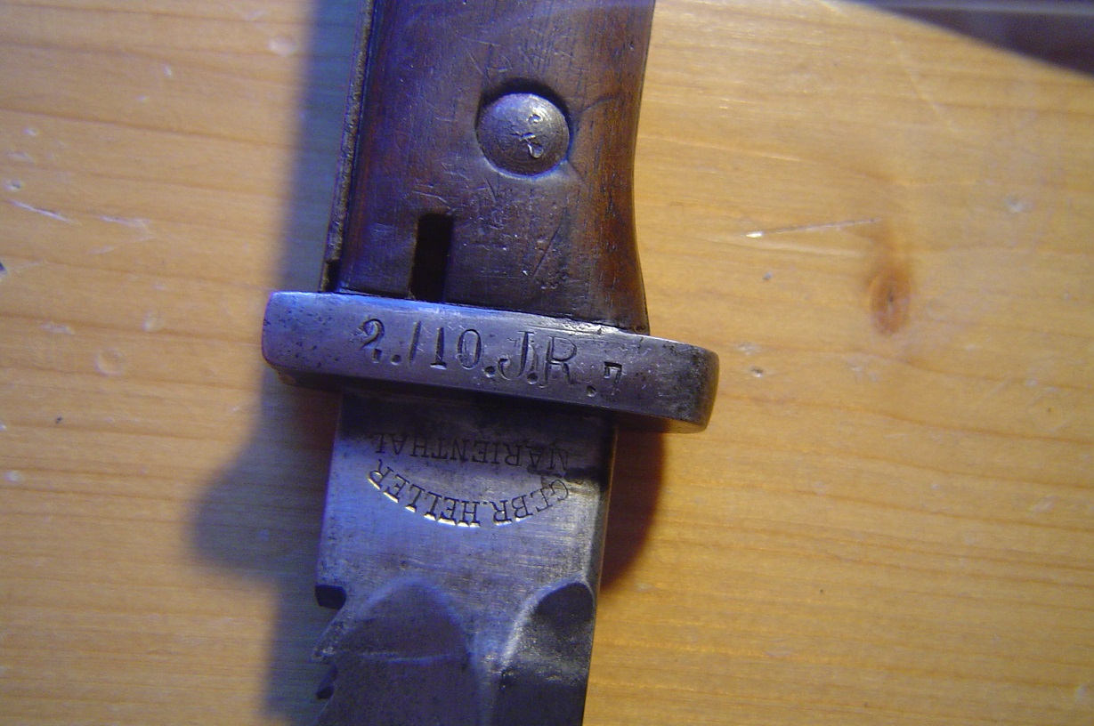 Die Abnahme am Klingenrücken scheint ausgeschliffen. Der Truppenstempel ungewohnt,