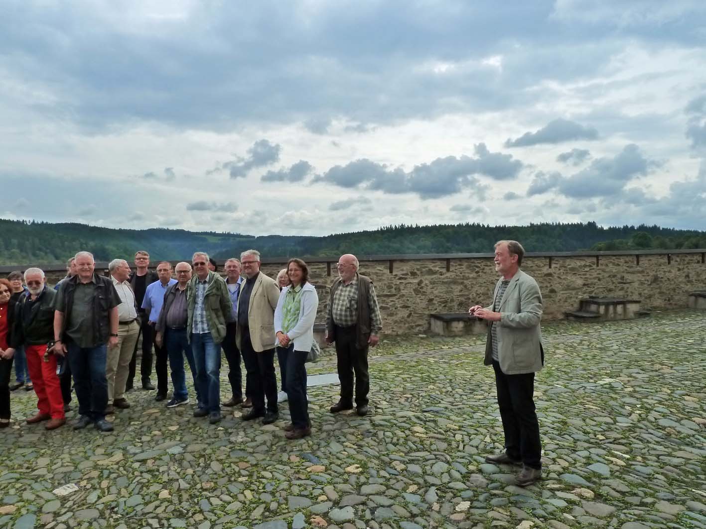 Begrüßung der 54 Teilnehmer durch den Arbeitskreisleiter und Herrn Luckhardt vom Museum Schloß Burgk.