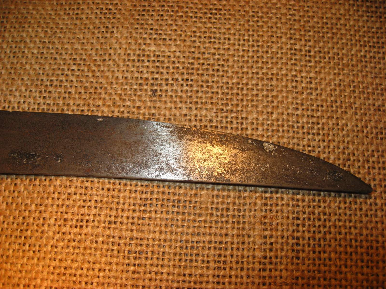 Auf dem Klingenrücken eine Gravur in Schreibschrift. Aber absolut nicht mehr zu entziffern.
