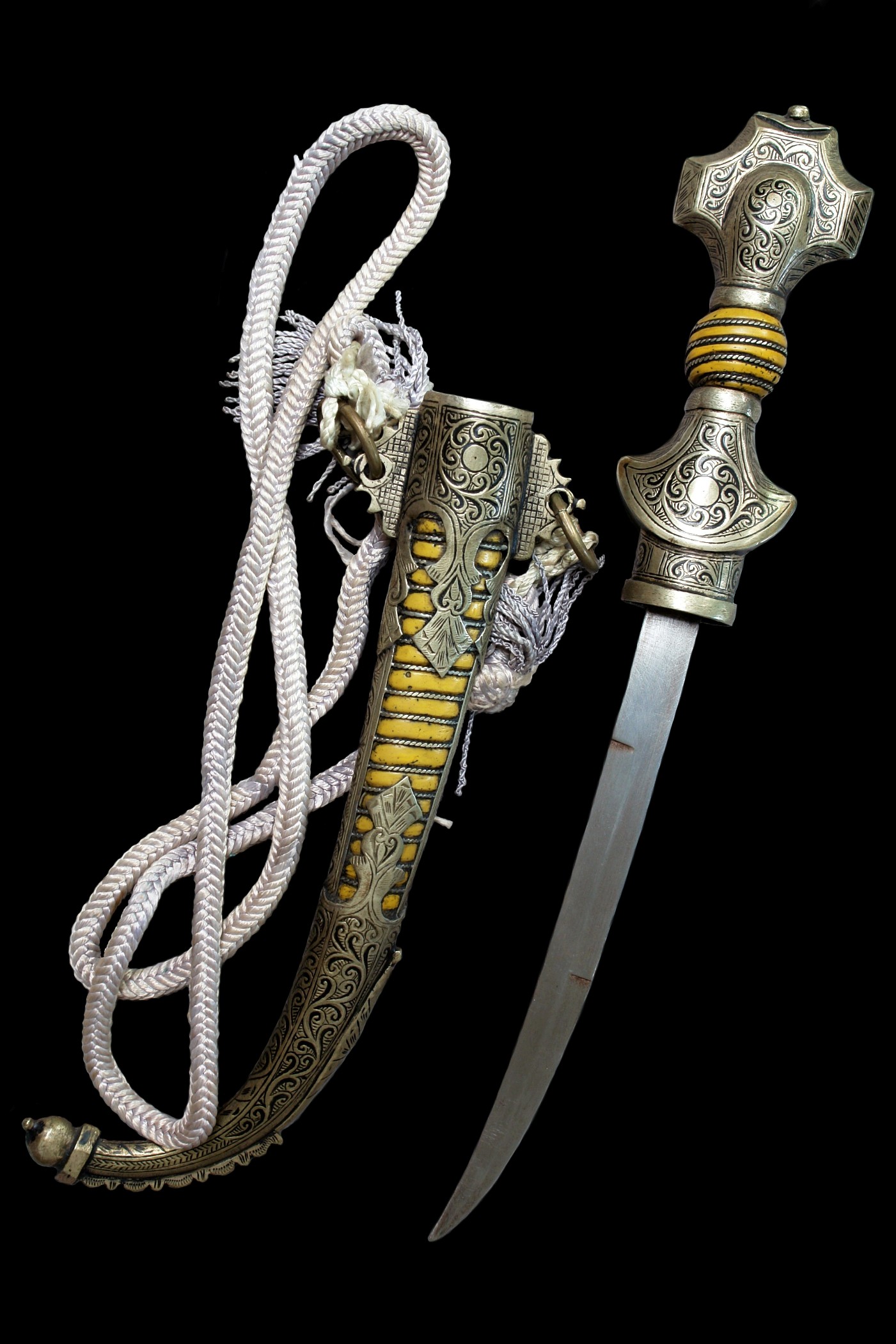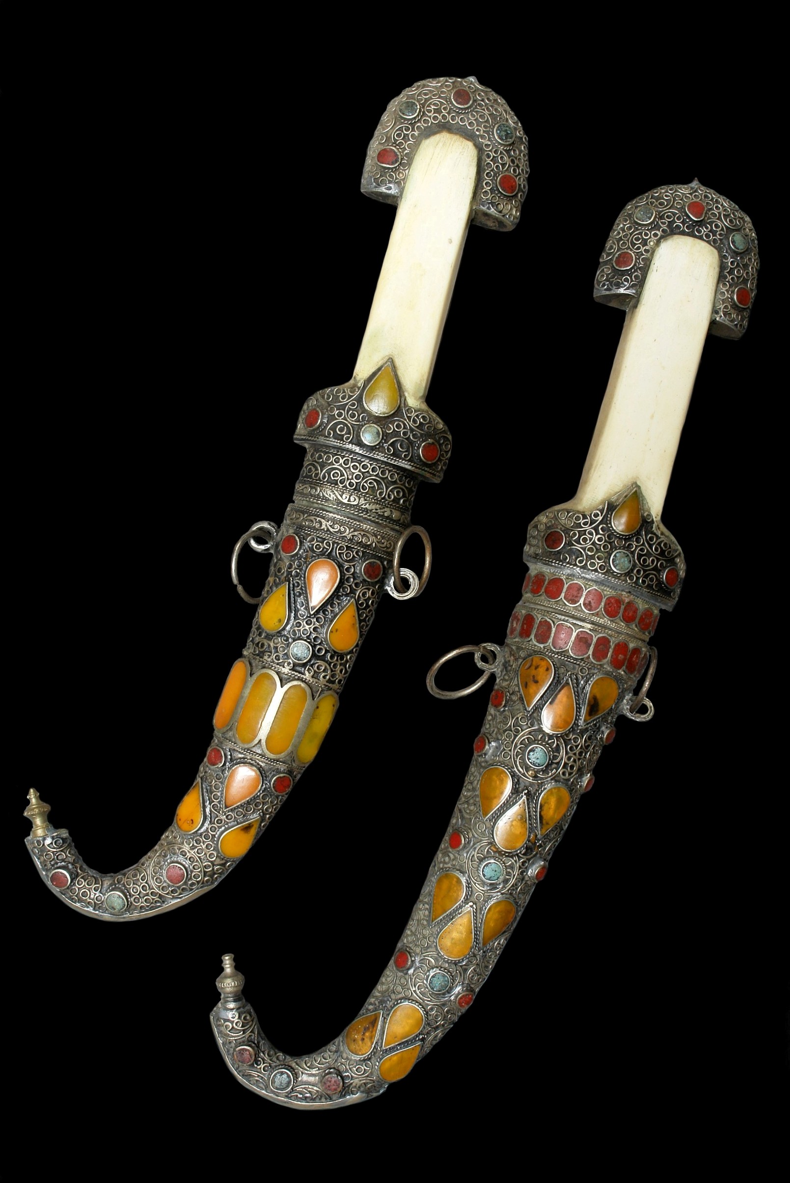 Ich möchte hier zwei weitere marokkanische Koummyas vorstellen, die augenscheinlich beide aus der gleichen Werkstatt stammen. Sie dürften zeitlich wohl etwa um das Jahr 1900 einzuordnen sein.