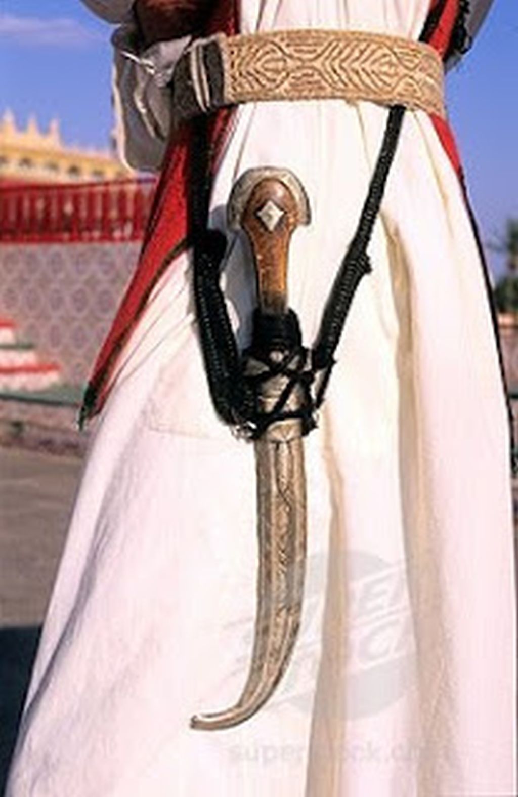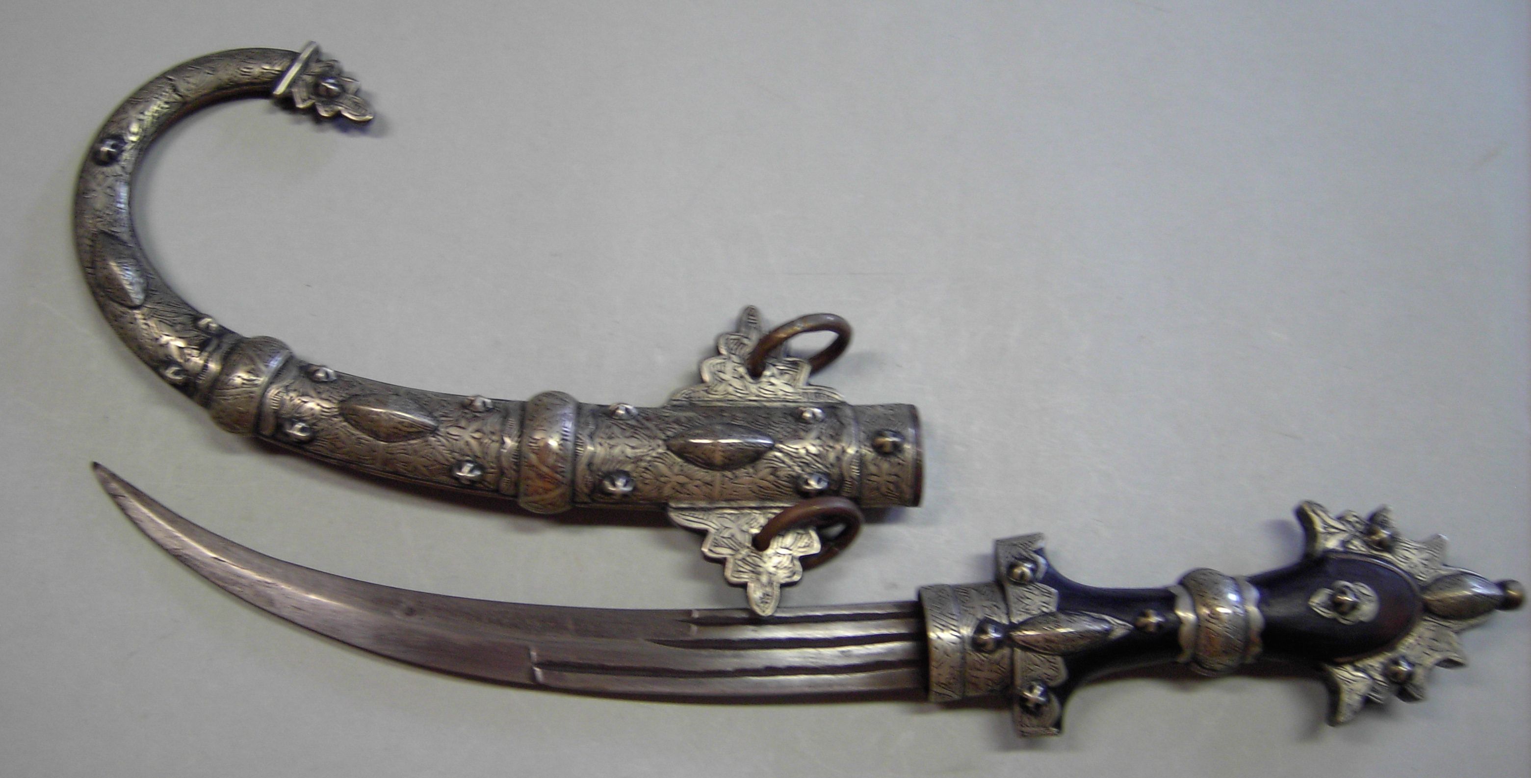 Die fast pompöse Dekoration mit Schmucksteinen und filigraner Metallarbeit, in Verbindung mit den Beingriffen, bildet einen starken Kontrast zu den recht einfach gestalteten Klingen, welche im versorgten Zustand nicht sichtbar und damit für die Zurschaustellung der Bedeutung des Trägers unwichtig waren.