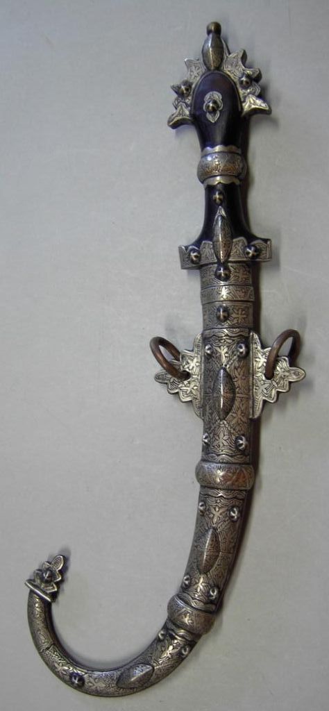 Die fast pompöse Dekoration mit Schmucksteinen und filigraner Metallarbeit, in Verbindung mit den Beingriffen, bildet einen starken Kontrast zu den recht einfach gestalteten Klingen, welche im versorgten Zustand nicht sichtbar und damit für die Zurschaustellung der Bedeutung des Trägers unwichtig waren.