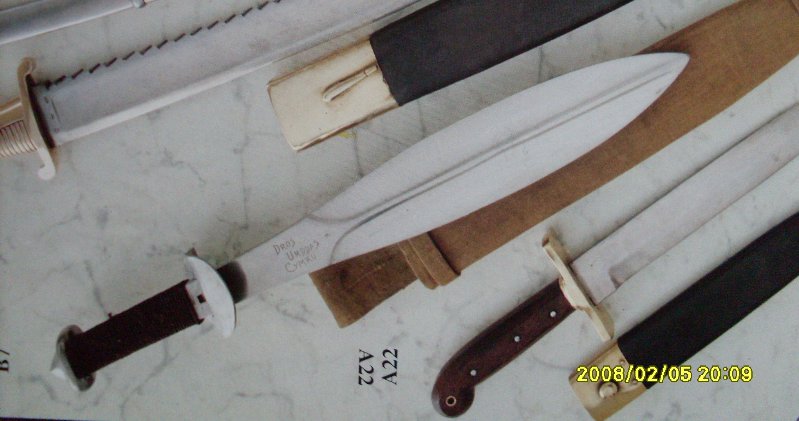 Und jetzt beginnt der schwierige Teil die Bestimmung. Von diesem Modell gibt es seit längerer Zeit Nachbauten die alle mit dem gälischen Spruch versehen wurden und hochglanzpoliert sind um sie an den Mann zu bringen werden sie künstlich gealtert mit Säure oder durch vergraben u.s.w so das eine eindeutige Bestimmung nur durch den Vergleich möglich ist diesem Umstand bewusst habe ich die Daten von meinem Stück an das Museum der Royal Welch Fusiliers geschickt ein Vergleich mit den im Bestand des Museums hat eine Übereinstimmung der Masse ergeben die Abweichung liegt im mm Bereich auf der Waffe sind zwei Zahlen geschlagen 23 und eine 2 auf den anderen Knaufrand dessen Bedeutung ist unbekannt auf den Fotos sieht man Bearbeitungsspuren und alten Rost auf der Scheibe um mir sicher zu sein hilft nur ein Vergleich mit einem Original ich glaube zu 90% das es sich um ein echtes Stück handelt was ich mir nicht erklären kann ist sein Gewicht das im Vergleich zu Belegstücken um 140g zu schwer ist trotz gleicher Abmessungen auch die Vergleichstücke schwanken so um 90g im Gewicht
