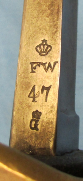The same seller had another interesting sword. The blade seems to be Prussian, with stamp FW 47. But I have never heard about this type of hilt in the Prussian army
