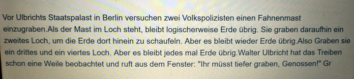 Jaja, es gab tatsächlich den einen oder anderen real existierenden Unfug in der DeDeRe. Aber, so gab es seinerzeit niemanden, der ohne Arbeit sein musste. :D
