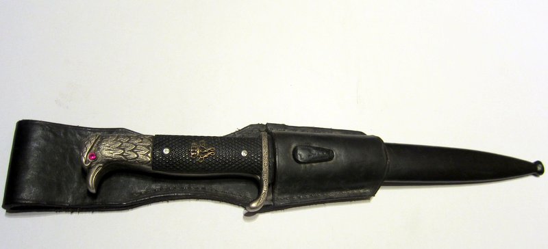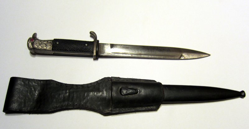 Eine Geschichte vom Vorbesitzer gibt es leider nicht. Das Seitengewehr habe ich vor langer Zeit mal auf einen Flohmarkt gekauft. Der Verkäufer war keine Militariahändler und konnte keine Auskunft geben. Der Trödelmarkt fand in Plau am See (Mecklenburg) statt.