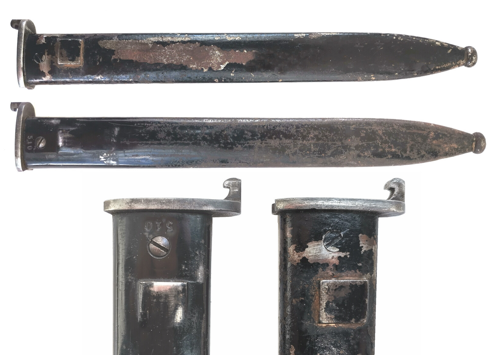 Waffennummer 72510 auf dem Mundblech und 510 auf der Scheide