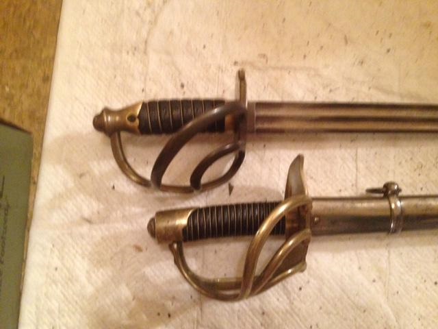 Die Truppenstempel sind auf den Bildern. Das französische Modell hat die Spitze der Klinge oben.
