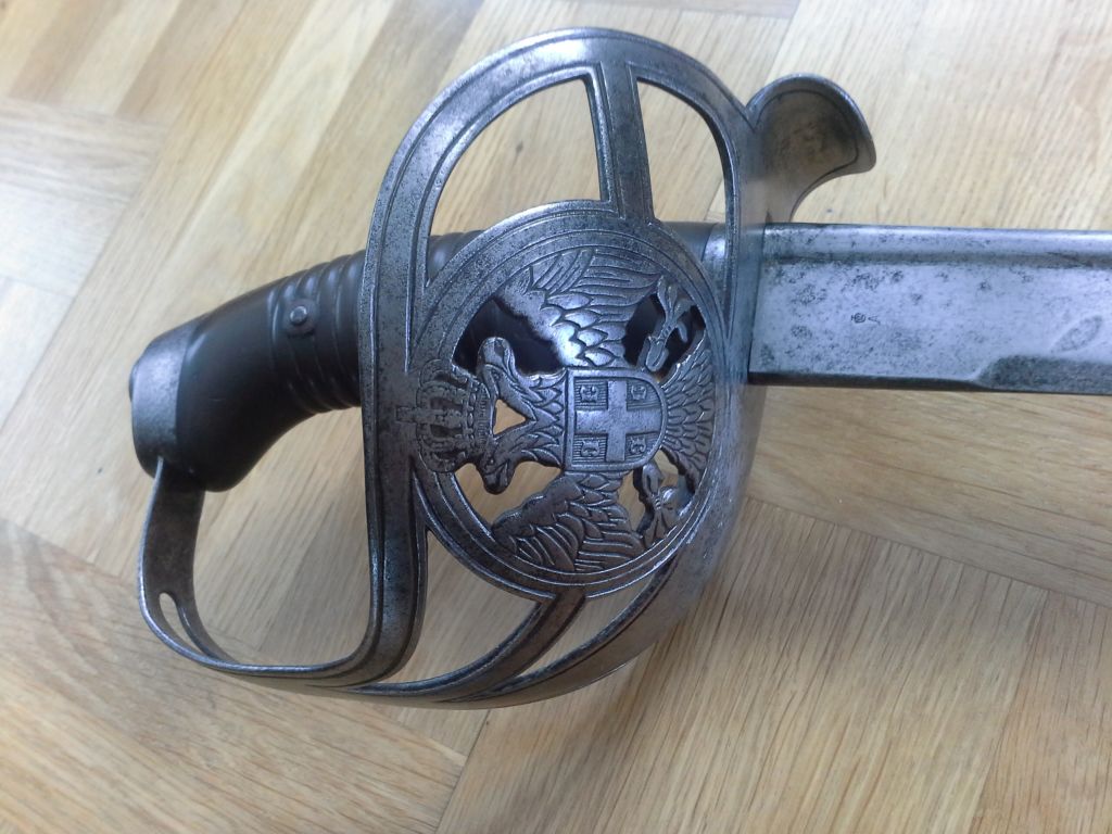 Im Vergleich zu seiner preußischen Vorlage, ein sehr wuchtig ausgeführter Säbel.