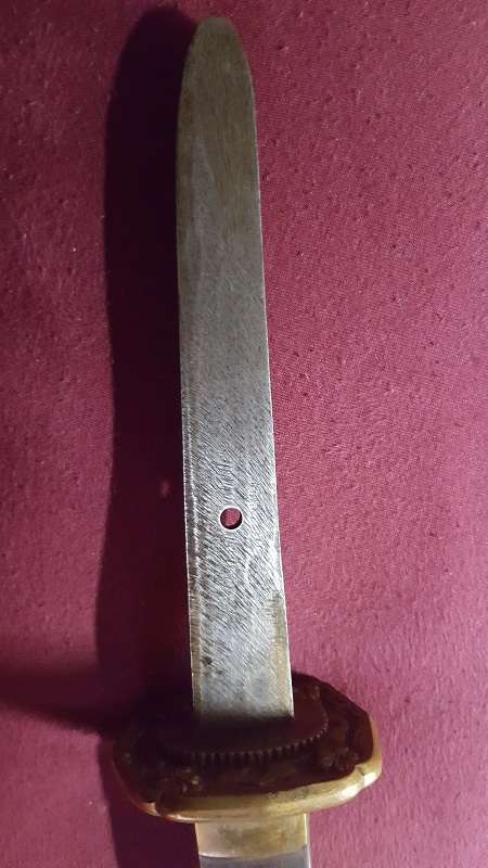 - falsche Griffbefestigung (Mekugi); an Offiziersschwertern wurden nie Messingschrauben verwendet, sondern ausschließlich Bambuspflöcke
