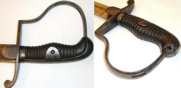 Nicht dazugehörend ist dagegen die Scheide. Diese gehört zu einem österreichischen Säbel, wahrscheinlich zu einem