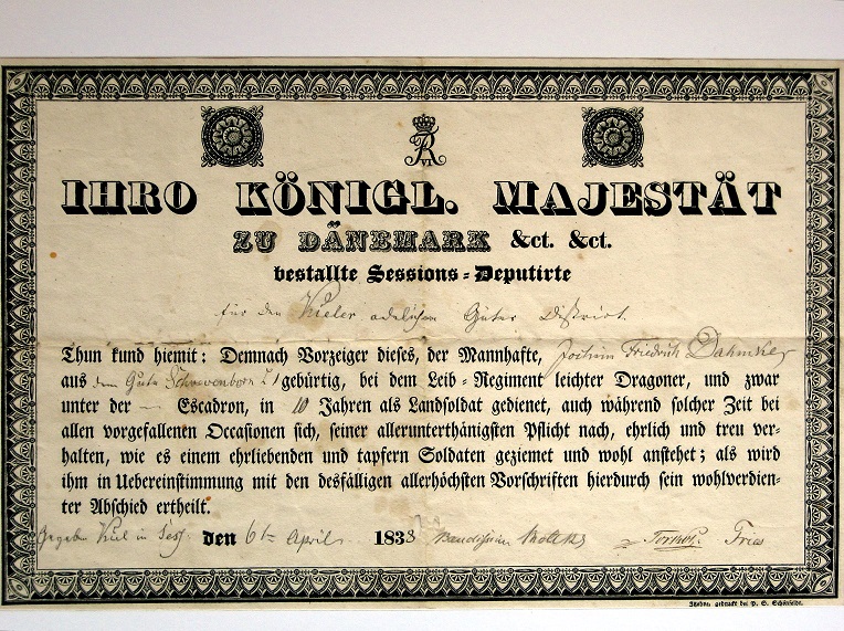 Die Urkunde ist doch über das königliche dänische Leibregiment ausgestllt, oder ?