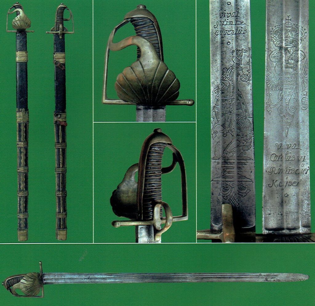 There is text on both sides of the blade "Vivat Carlu VI" and "Vivat Printz Eugenius". This indicates that it was made within Emperor Charles VI reign between 1711 and 1740, and before 1736, which was when Prinz Eugen died. The name of Prince Eugene could indicate that the sword was used in a cavalry regiment With his name, but so far I have only managed to find Austrian regiments with this name. Could the sword be Austrian?