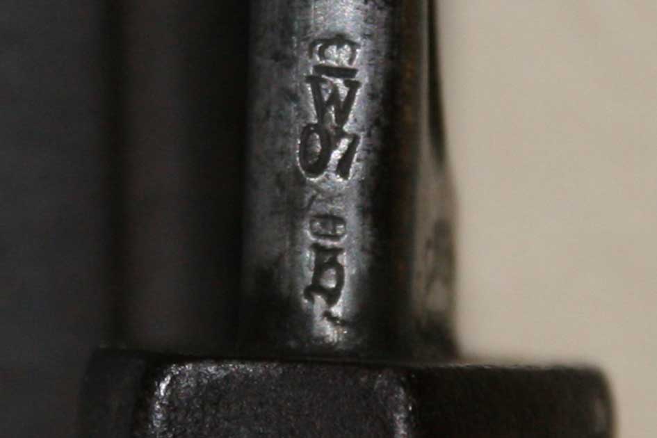 Es ist ein preussisches Seitengewehr (W), daß 1907 in Dienst kam. Die Scheide war aus Leder mit Eisenbeschlägen. Wenn das Leder zerbrochen war, gab es Ersatzscheiden aus Metall. Diese Scheiden sind heute etwas seltener als die normalen Lederscheiden.