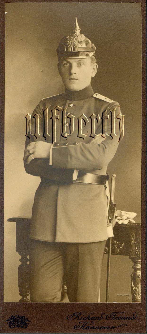 Das Foto eines Soldat aus dem 1. Hannoverschen Infanterie-Regiment Nr. 74 aus dem Jahre 1913 mit dem oben beschriebenen Seitengewehr.