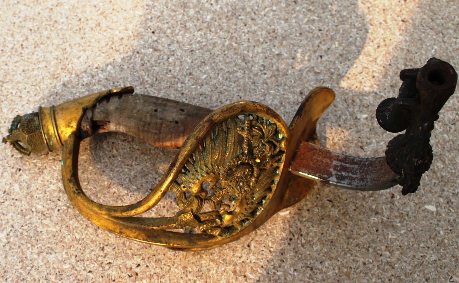Hier einmal die interessante Konstruktion eines Degens für Offiziere der kaiserlichen Schutztruppen als Kerzenhalter. Zwar mit altersbedingten Schäden, nichtsdestoweniger selten und vor allem noch unverbastelt.