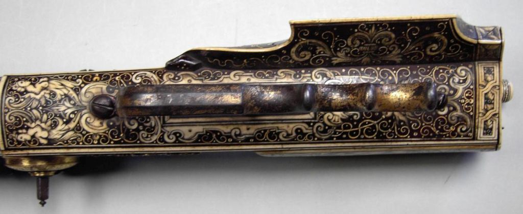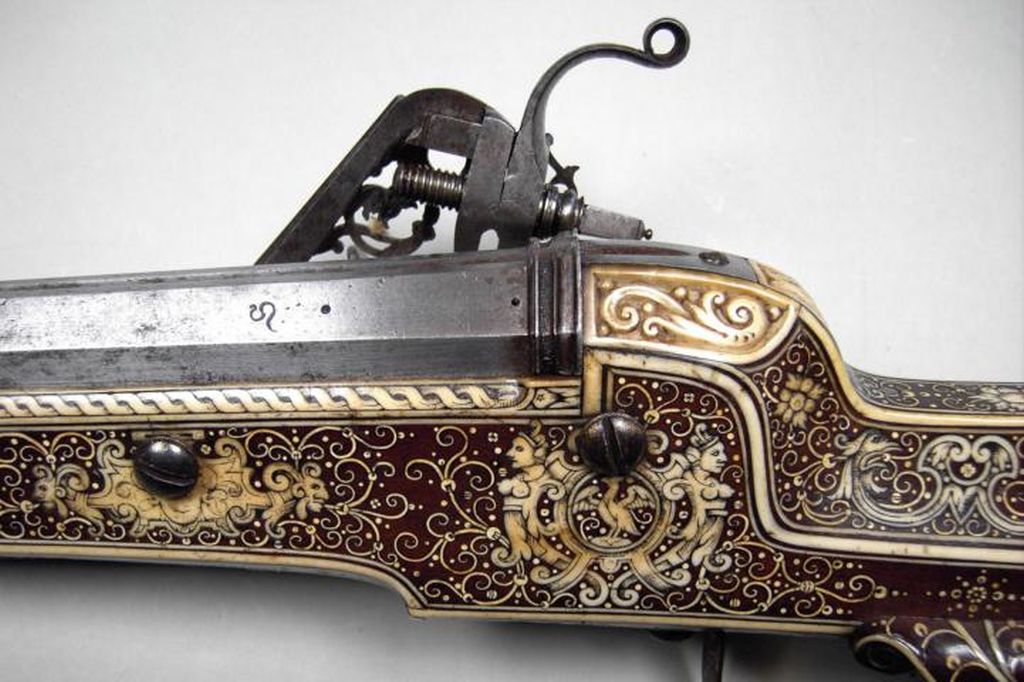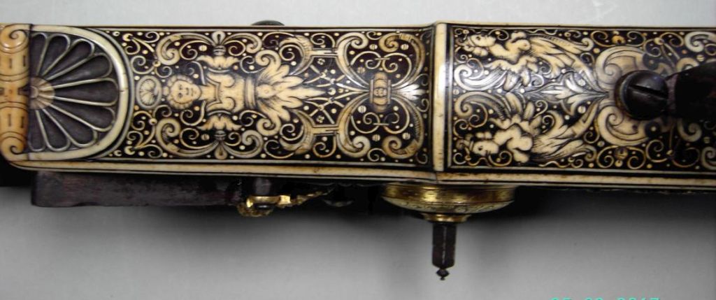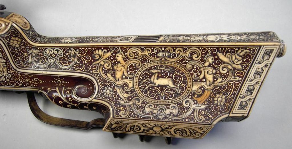 Die nachfolgend vorgestellt Büchse wurde 1619 von Hans Stockmann in Dresden gefertigt. Ihre künstlerisch herausragende Gestaltung lässt vermuten, dass Stockmann die Waffe für den sächsischen Hof unter Kurfürst Johann Georg I. gefertigt hat. Der voll verbeinte Obstholzschaft, die vergoldeten Dekorationen, der zehnfach gezogene Lauf, das problemlos funktionierende Radschloss unterstreichen diese Vermutung.