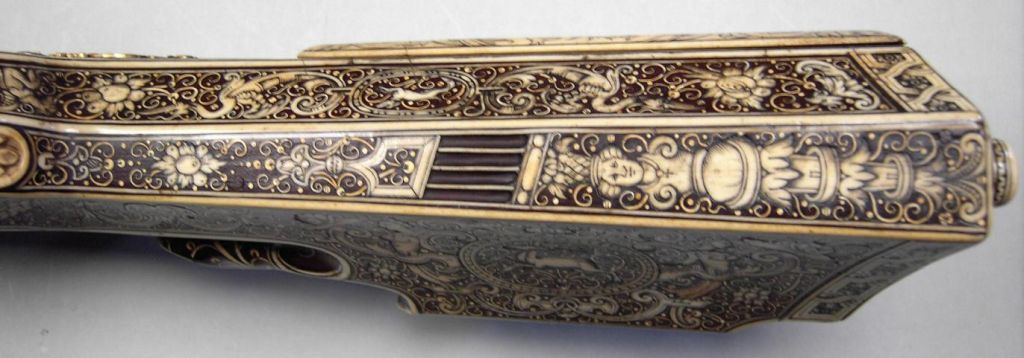 Stockmann war mir bisher nur ein Begriff in Verbindung mit seiner speziellen Schäftung von kunstvoll verbeinten Radschlosspistolen, die meist einen auffallend geraden Schaft mit einem birnenförmigen Knauf aufwiesen.