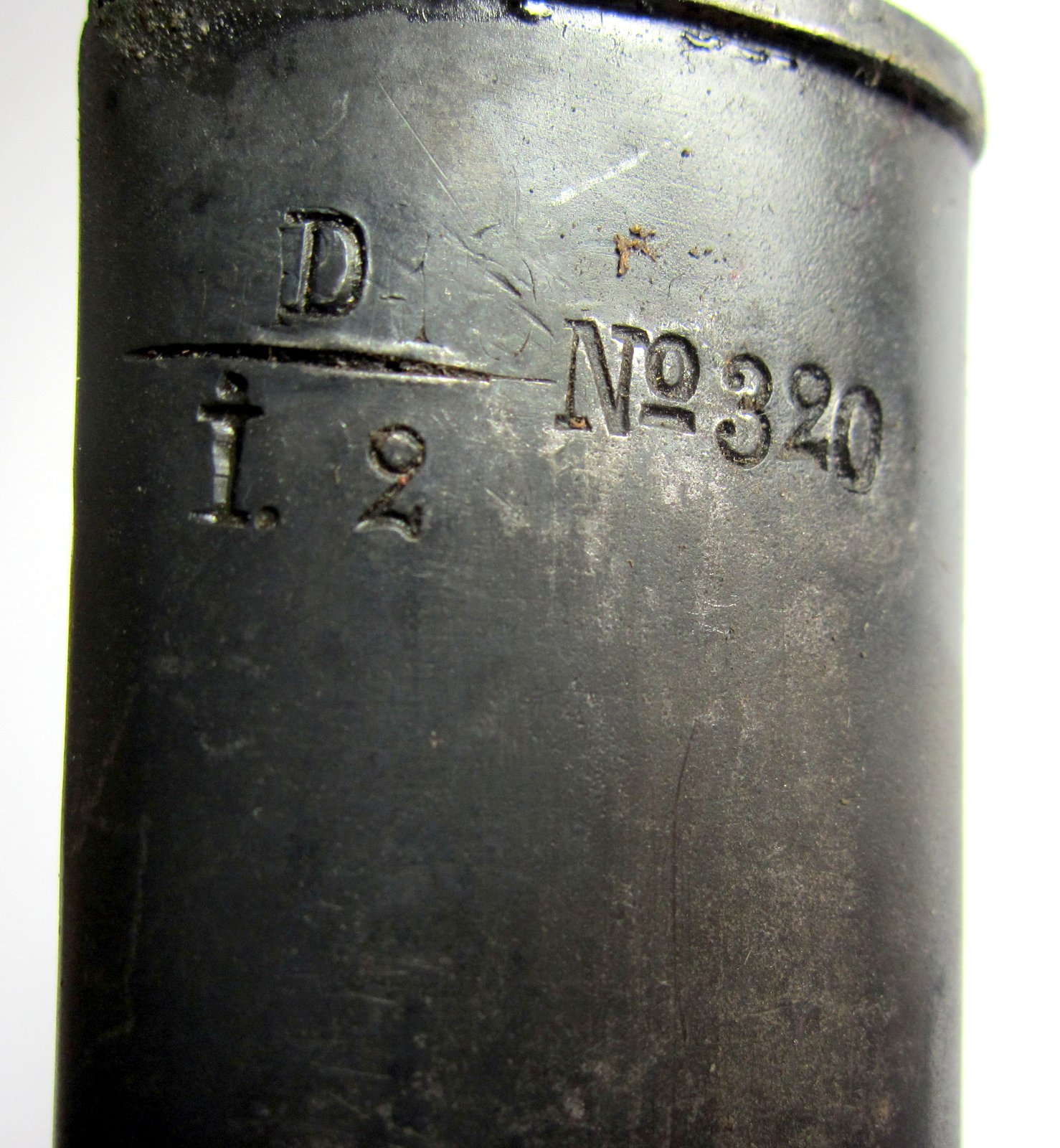 die Metallscheide ist am Mundloch mit 211 und bekrönten C, der Scheidenknopf mit einer Krone und 211 sowie mit D/I. 2 Nr. 320gestempelt