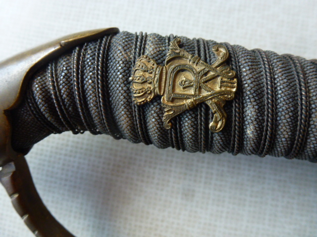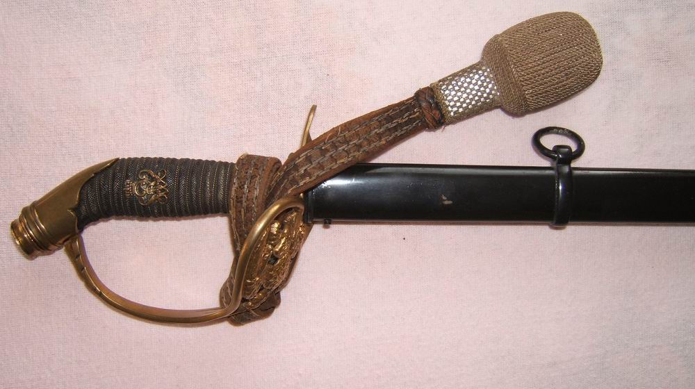 Die Form der Deckplatte am Scheidenmund spricht zusammen mit der Herstellermarke dafür, dass der Degen nach 1918 gefertigt wurde.