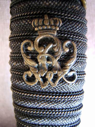 Eine gleiche Chiffre, gleicher Klingenhersteller, übrigens mit auch identisch falscher Scheide, findet sich an einem Degen, der am 19.10.13 bei der Fa. KUBE auf einer Auktion angeboten wurde (Los Nr. 21).