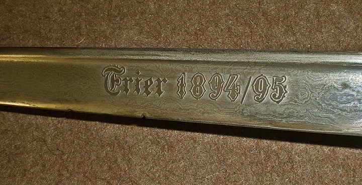 ich möchte gern folgenden " preußischen " Geschenk Degen vorstellen! Vor vielen Jahren, in einer Auktion erworben. Inschrift.: Langen s./l. Abegg, Trier 1894/95.