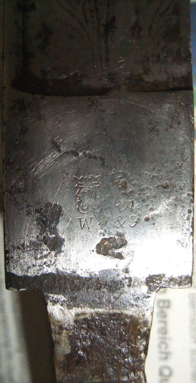 es handelt sich wohl bei diesem (mit Scheide) 1,2 kg schweren Säbel, mit geätzter Klinge um einen preußischen Artillerie-Extra-Säbel um 1910?