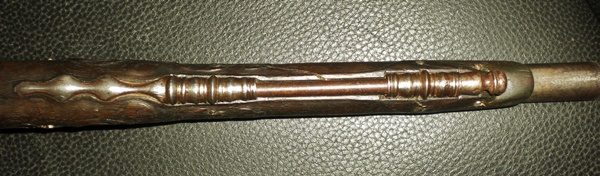 Achtkantiger, nach(7cm) geschnittenem Baluster, runder 26.5cm langer Lauf mit glatter Seele. Kaliber 16mm. Über der Kammer geschnittener Dekor, der sich auf dem Knauf, dem Abzugsbügel u. Hahn fortsetzt. Maskarons, auf dem Knauf, dem Griffrücken, links hinter dem Hahn und neben dem Abzugsbügel. Vollschäftung, der Vorderschaft ist beidseitig leicht beschnitzt. Auf der Schlosspl." LI?(S)ER " ?! Gruß, Bernd