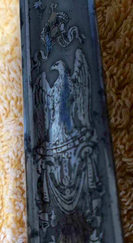 Drittens zeigt die Terzseite der Klinge einen Adler mit der Kaiserkrone und ihre Quartseite einen
