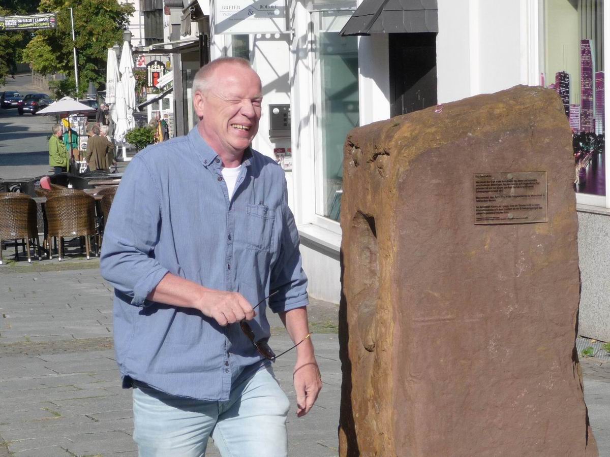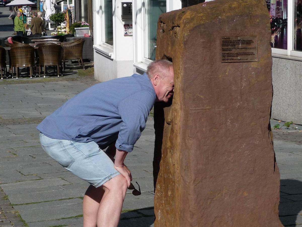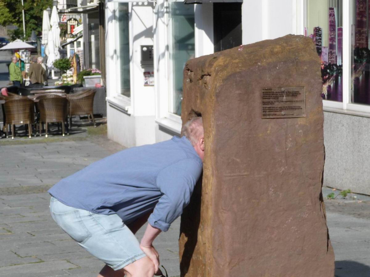 Der Summstein in der Fußgängerzone, auf der Achse vom Hubschraubermuseum zum Landesmuseum.