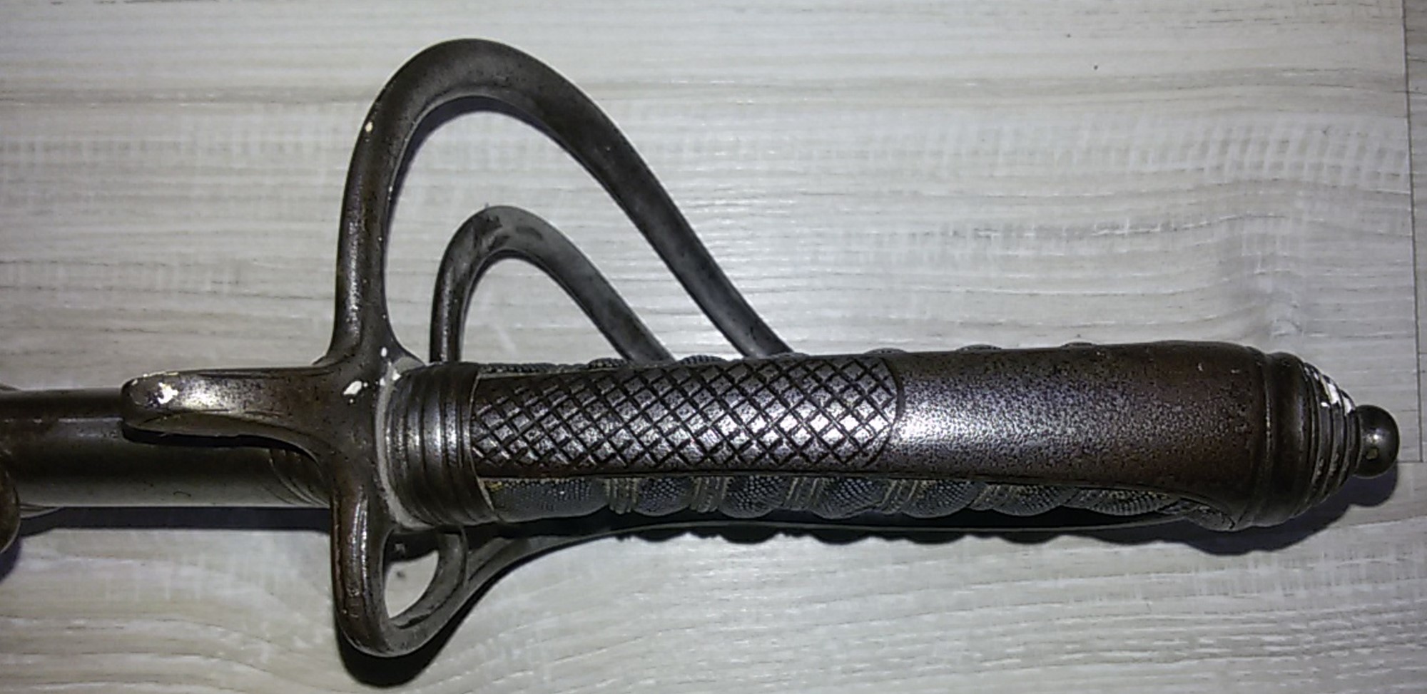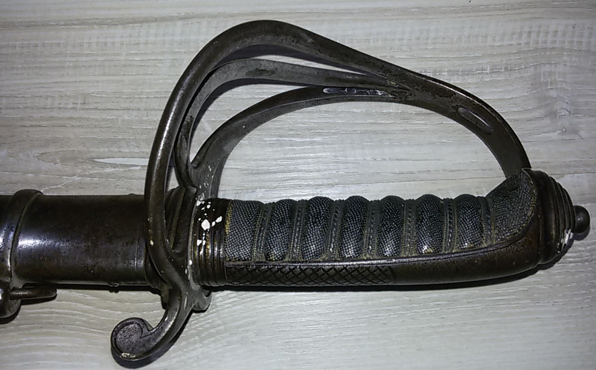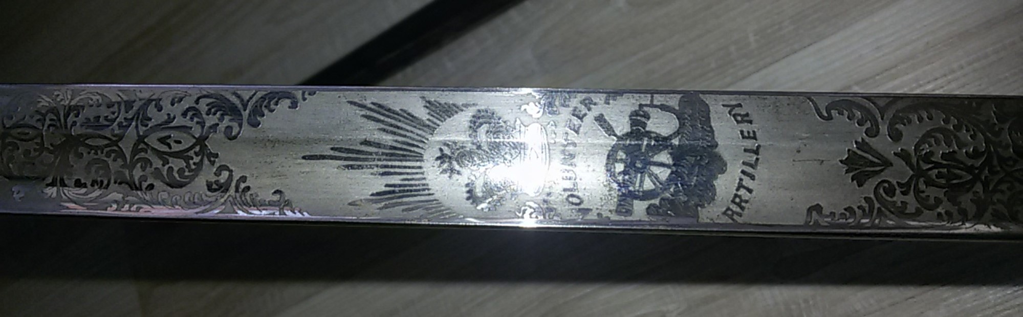 Genug der Verwirrung, hier handelt es sich eindeutig um die Artillerie-Variante, zumal es auf der Klinge steht. Den Tragezeitraum kann man über die überkrönten Initialen ermitteln. Sollte es sich um ein verschlungenes VR handeln, dann war es zur Zeit von Königin Victoria (