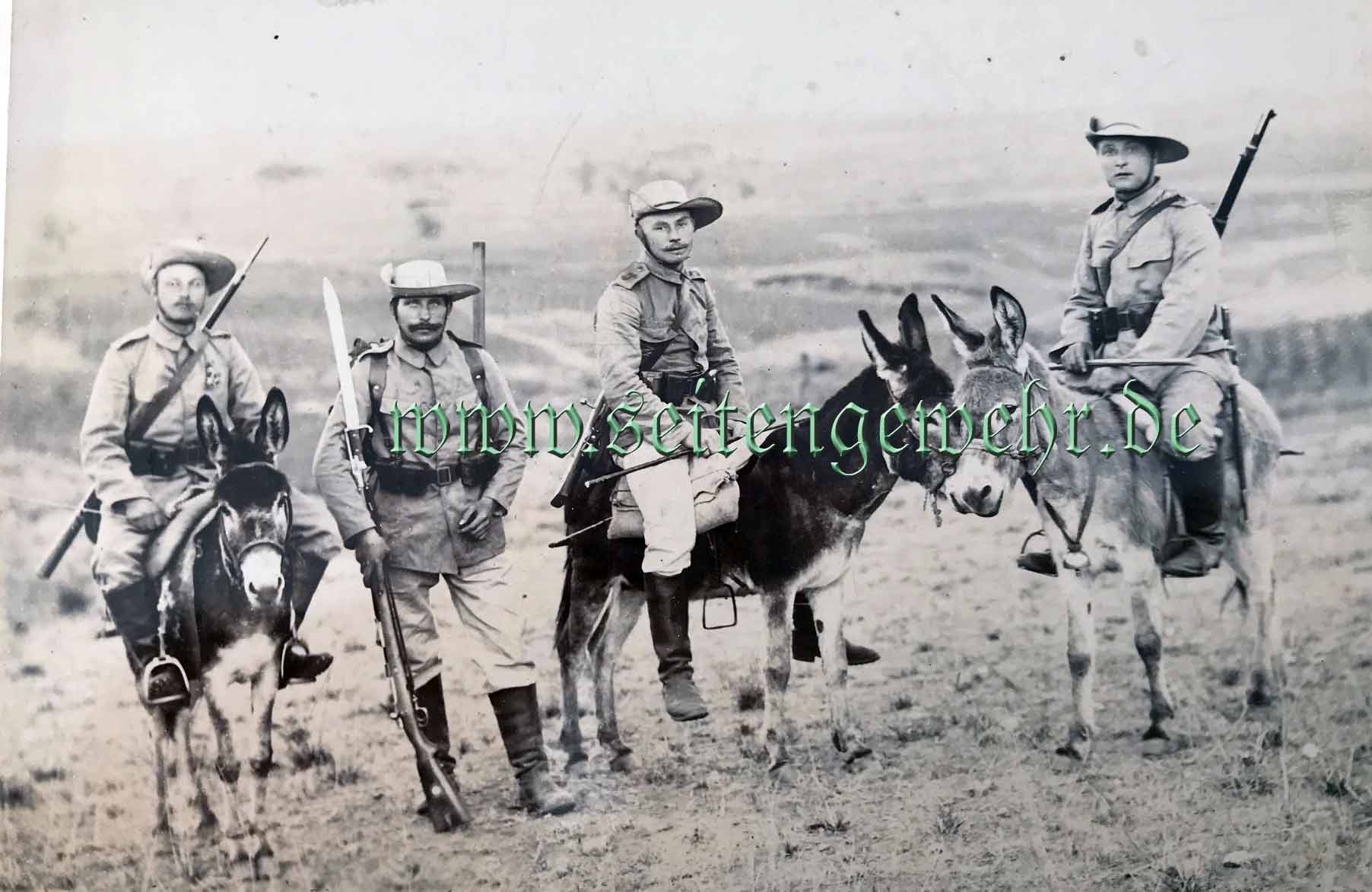 Quintessenz der Anmerkung: Das historische Foto dürfte in der ersten Zeit des Wirkens des deutschen Expeditionskorps in China aufgenommen sein. Uniformierung und Bewaffnung sind absolut authentisch, auch wenn das Foto für Informationszwecke der US-Streitkräfte "gestellt" worden ist. ("Man kannte sich bis dahin ja nicht"!)