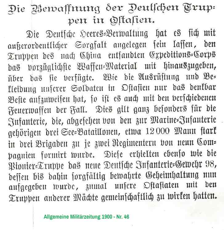 zeigt, besaßen die Chinesen bereits 6.250 Mauser Gewehre und Karabiner.