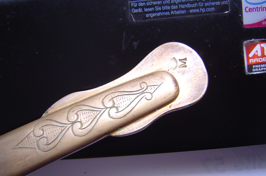 also mit 2 gedrillte Drähte habe ich auch noch kein KM-Säbel gesehen. Habe das Teil seit heute vor mir zuliegen und ich kann mir vom Aussehen, Alterspuren am Griff und die Lage der Drähte nicht vorstellen, dass hier jemals der 3. dickere vorhanden war. Ist die Abnahmepunze mit dem M und Anker o.k.?